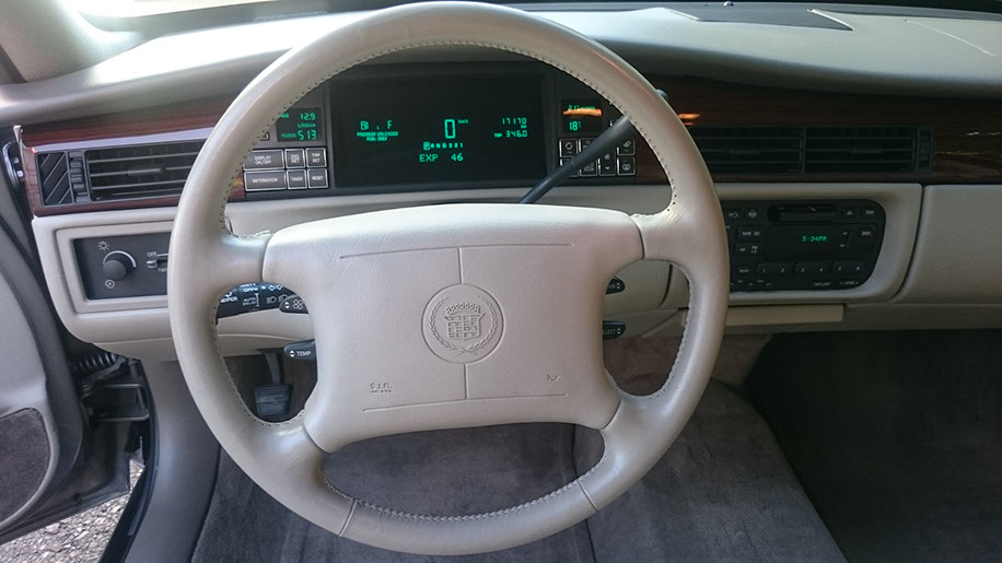 Mein Concours: | Er wurde am 15.07.1996 in Zürich ausgeliefert, aber in St. Moritz zugelassen. Der Wagen war im Ferienhaus stationiert und wurde nur selten im Sommer gefahren. So kamen bis 2016 gerade mal 17’000 km zusammen. Ich konnte den Wagen dann kaufen und hab ihm die passenden Weisswandreifen spendiert. Sonst war nichts zu tun. Die Innenausstattung ist wie neu und riecht auch so wie damals. Wer mal in den 90er Jahren in den USA die höchste Mietwagenklasse gebucht hat und dann einen Cadillac de Ville oder Lincoln Town Car fahren durfte, weiss wovon ich spreche. Als ich auf der Probefahrt einatmete war es chancenlos um mich geschehen… |